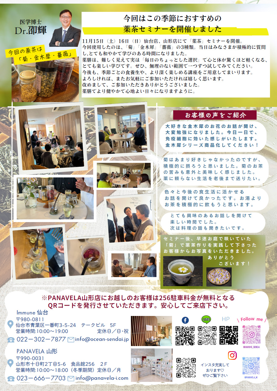 NEWS 健康寿命を延ばす事を一緒に考えてみませんか? トップ お知らせ イミューンニュース128号 Access 住 所/仙台市青葉区一番町3-5-24 テークビル5F 営業時間/10:00~20:00(19:30 受付終了) 定 休 日/日曜・祝日 電話番号/022-302-7877 ※当面の間、営業時間は19時までとなります。 ocean-sendai.Inc Immune SENDAI SINCE 2014.